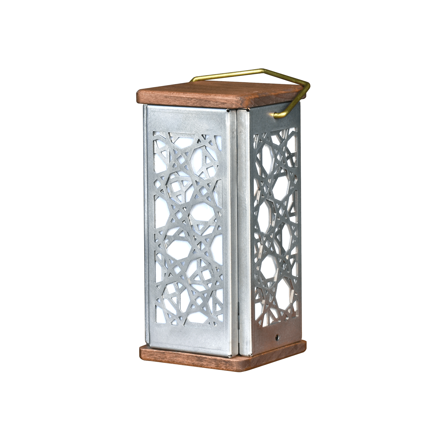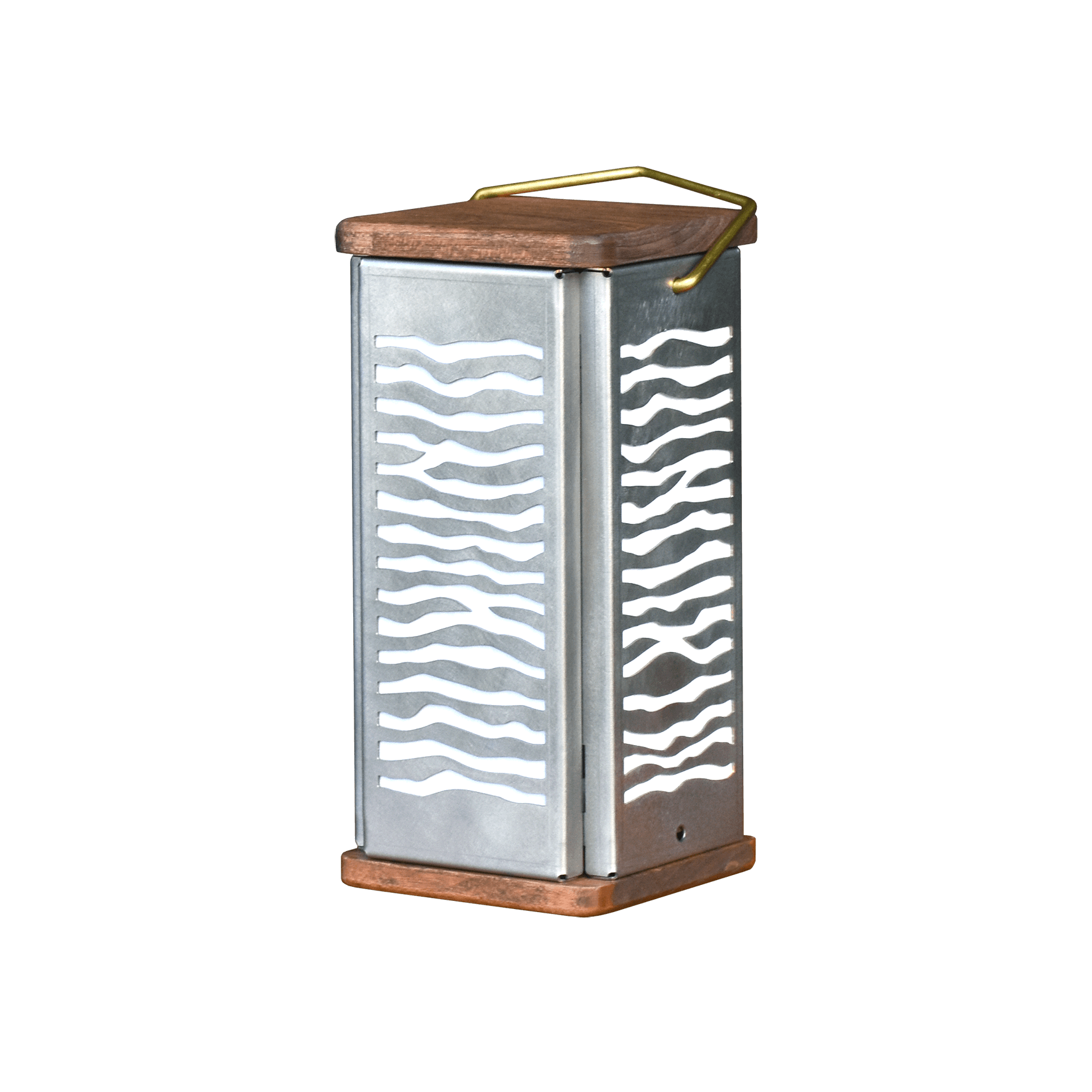 細いタイプのランタンを木の台座に置いて使用できる、しっかりタイプのシェードになっています。吊るしても良し、置いても良し、なので屋内外様々なシーンで活躍できます。取っ手も取り外しが可能です。
