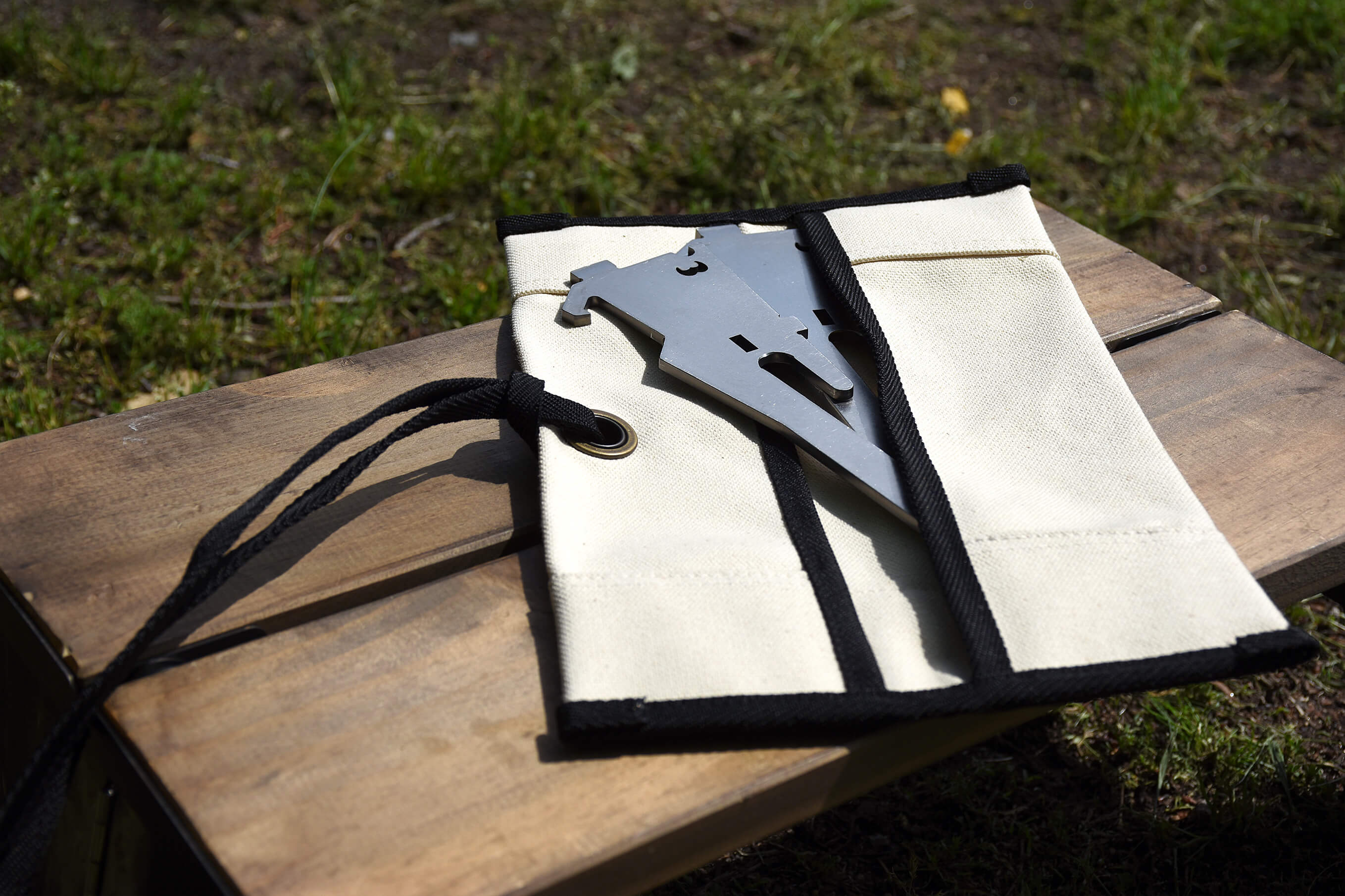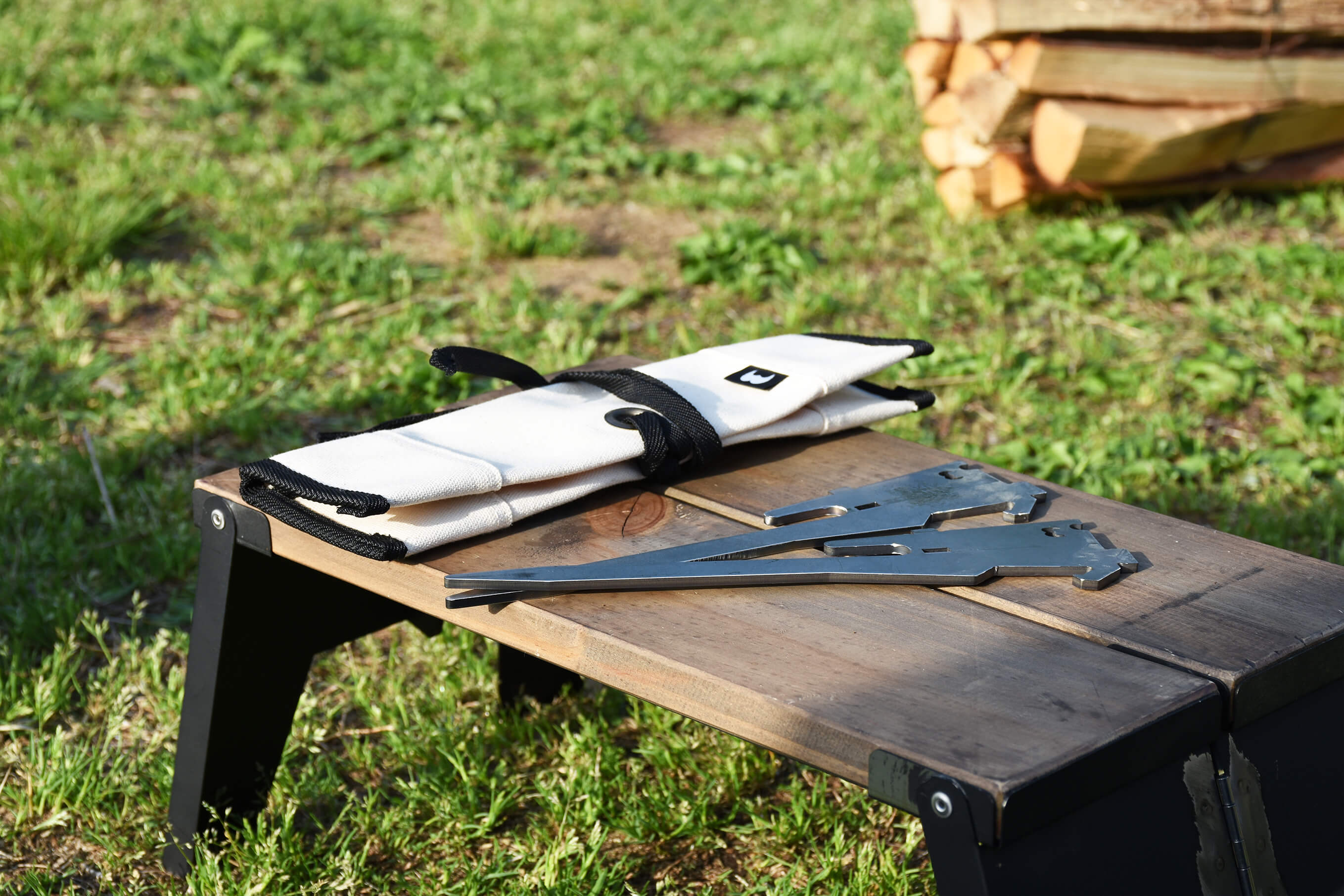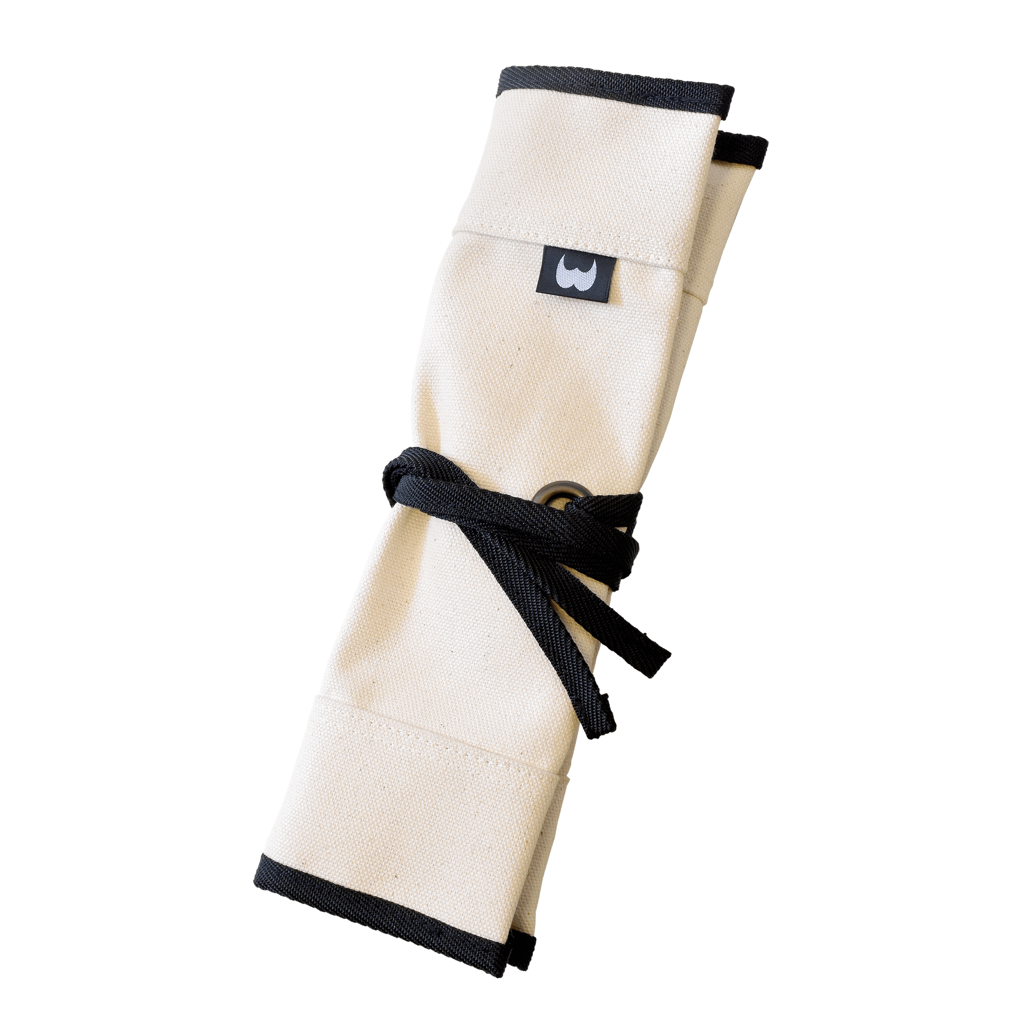 紐でくるくるっと包めば、まるでペンケースのような形でペグを持ち歩くことができます。Hammer pegに関わらず他のペグや、細長い小物などをまとめるのもおすすめです。