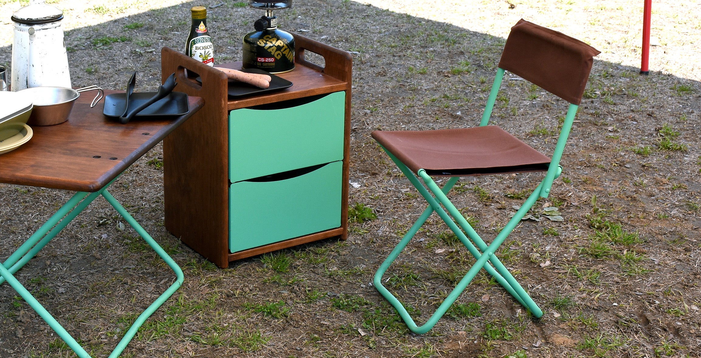 他にはないようなカラーの引き出しは、あなたのキャンプサイトに鮮やかな風を吹き込みます。パイプは粉体塗装でざらっとした質感に仕上げ、どんなシチュエーションにも馴染む手触りに。キャンプにはもちろん、インテリアとしても活躍できる一台です。