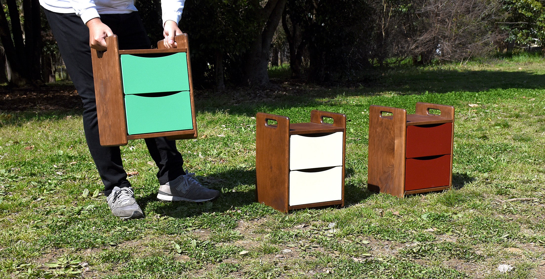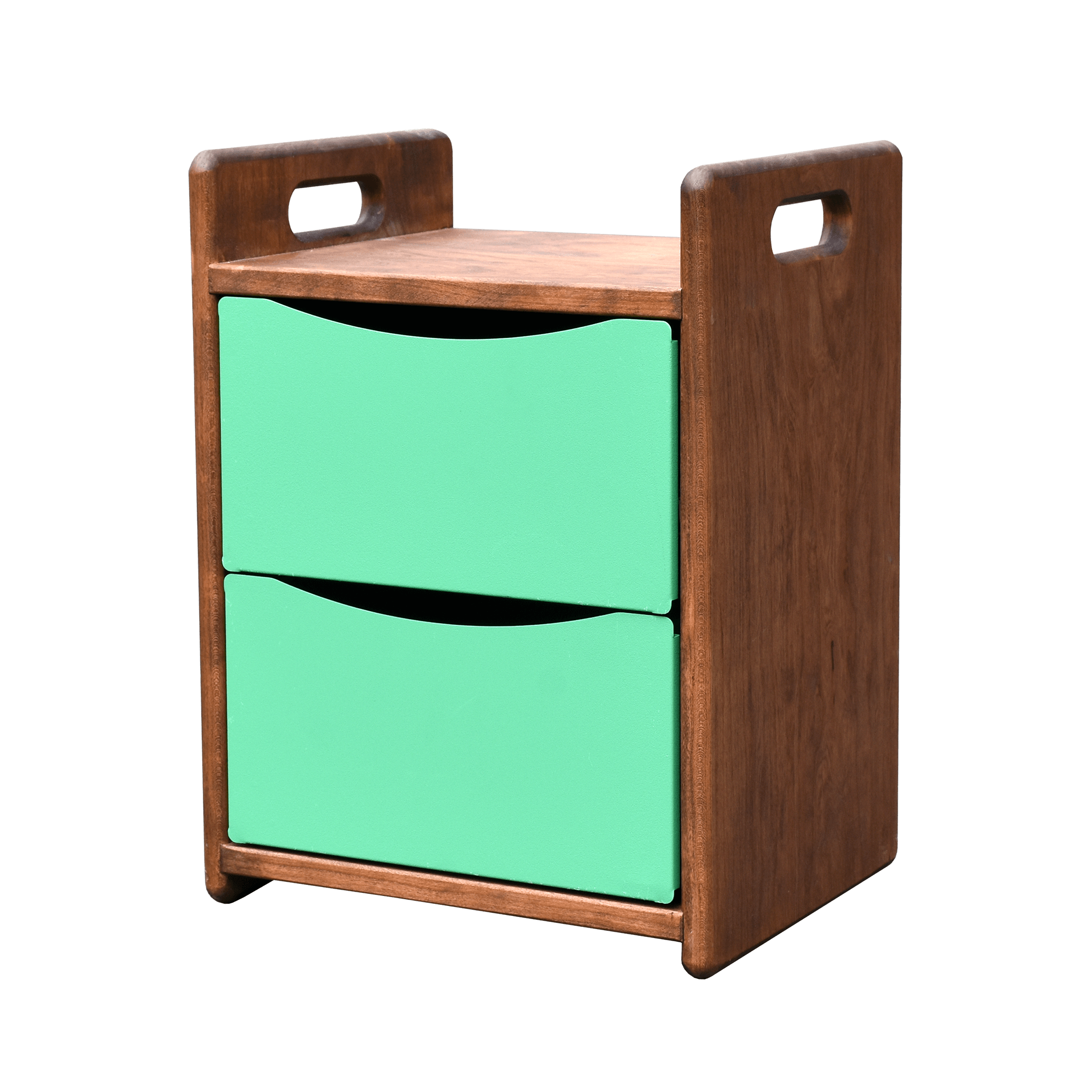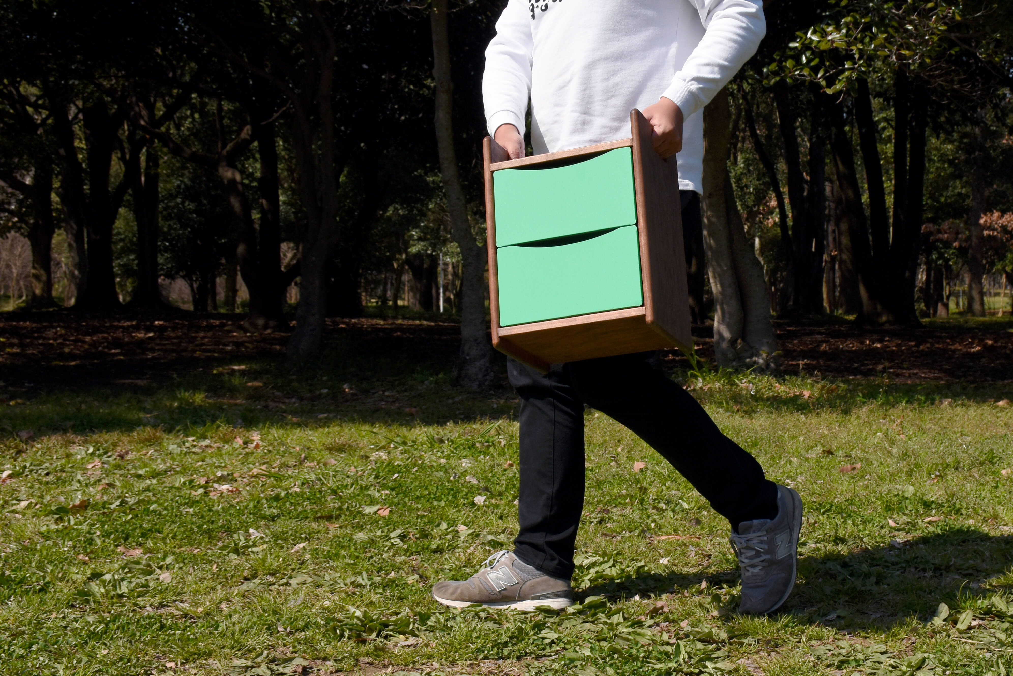 引き出しの爽やかなカラーと、シックな天板とが絶妙なバランスで手を取り合った収納ボックスです。