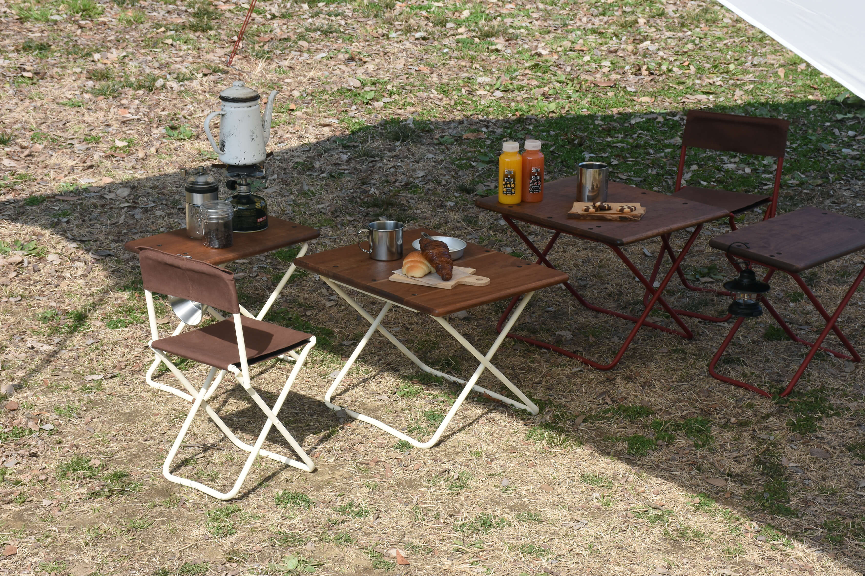 Sサイズはソロキャンプでのサイドテーブルとして、家ではベットサイドテーブルとして活躍します。MOKU Table Lサイズと高さが同じなので、揃えて使用してもOK。