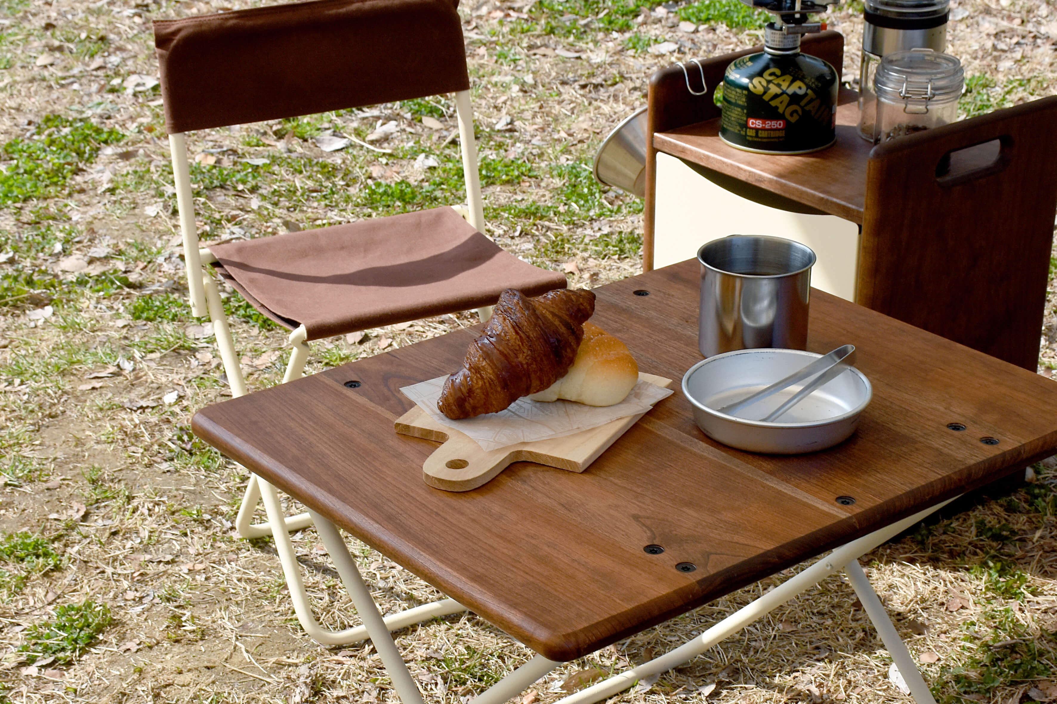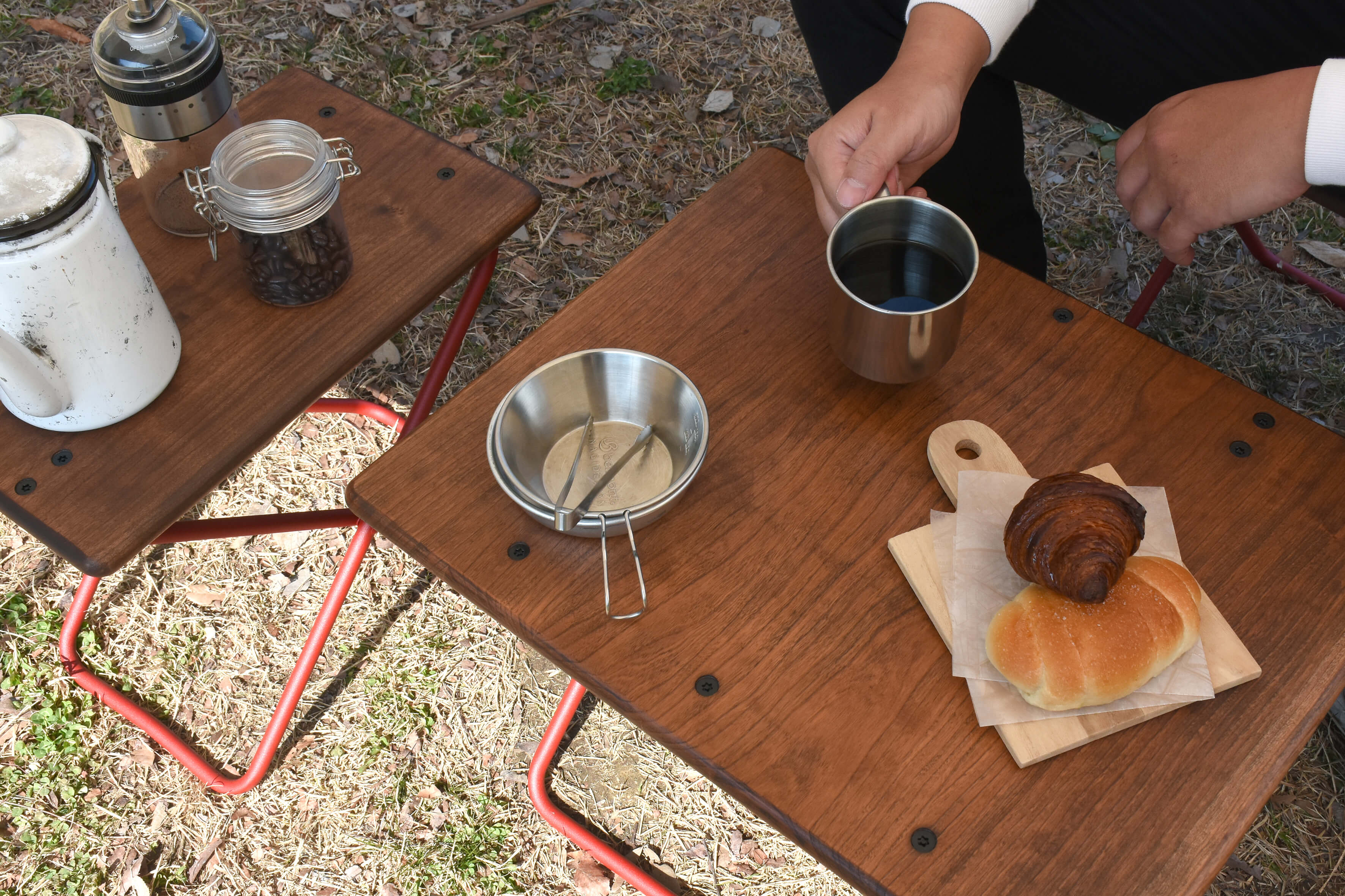 Lサイズはソロやデュオでのテーブルとして、家ではサイドテーブルとして活躍します。MOKU Table Sサイズと高さが同じなので、揃えて使用してもOK。
