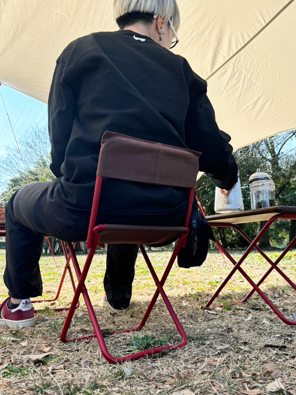 他にはないようなカラーのパイプ脚は、あなたのキャンプサイトに鮮やかな風を吹き込みます。パイプは粉体塗装でざらっとした質感に仕上げ、どんなシチュエーションにも馴染む手触りに。キャンプにはもちろん、ピクニックやインテリアとしても活躍できる一台です。