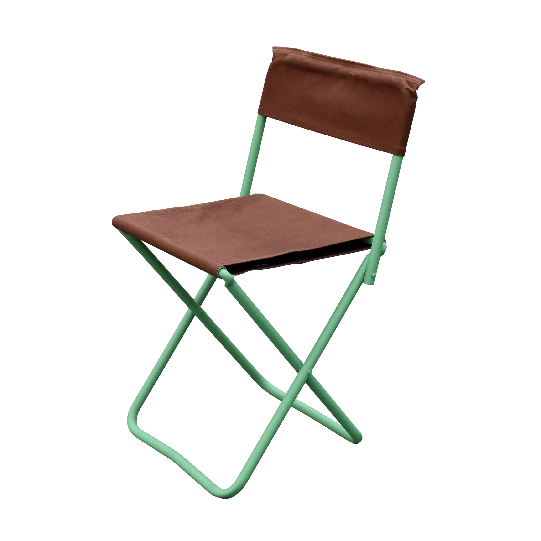 パイプ脚の爽やかなカラーと、ブラウンのコットン生地を使用した折りたたみのパイプチェアができました。